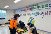 동네방네 김형규 기자 | 경상북도예천교육지원청은 10월 13일 소속 교직원 30여명을 대상으로 예천교육지원청 4층 대회의실에서 심폐소생술(CPR) 등 응급처치교육(1차 교육)을 실시한다. 이번 연수는 예천군소방서 예방안전과의 협조를 받아 진행하며, 이는 학교에서 발생할 수 있는 각종 응급 상황에 신속히 대응하고자 마련됐다. 이론 교육과 실습을 병행하여 실제 상황에서 적용 가능한 기술을 익히는 데 중점을 두었다. 연수 참가자들은 심정지 환자 발생 시 초기 대응법부터 자동심장충격기(AED) 사용법까지 다양한 내용을 학습한다. 특히 마네킹을 활용한 실습에서는 가슴 압박 위치와 속도 등을 정확하게 숙달하며, 응급 상황에서의 자신감을 일깨운다. 이번 교육은 전 직원 교육 이수를 목표로 2차 교육은 10월 20일에 30여명을 추가적으로 더 실시할 예정이다. 김성중 교육장은“학교 현장에서 응급 상황이 발생할 경우 골든타임 내에 올바른 처치를 제공하는 것이 매우 중요하다”라며 “이번 교육을 통해 우리 직원들이 응급처치에 대한 지식과 기술을 습득하여 안전하고 건강한 학교 환경 조성하는 데 기여하기를 바란다”라고 말했다.