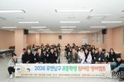 동네방네 김형규 기자 | 부산 남구는 지난 1월 19일부터 23일까지 5일간 남구청 별관 평생학습관에서 '2026년 유엔남구 초등학생 원어민 영어캠프'를 운영한다고 밝혔다. 이번 캠프는 통학형으로 진행되며 사전 온라인 레벨테스트를 통해 3개 반으로 편성됐으며, 매일 오전 10시부터 오후 5시까지로 총 30시간 과정으로 진행된다. 원어민 강사 3명과 한국인 멘토 3명이 참여해 학생들의 영어 의사소통 역량 향상을 지원한다. 캠프 운영에 앞서 입소식은 지난 1월 19일 오전 10시 남구청 별관 다목적홀에서 개최되어 캠프 취지 설명과 프로그램 안내, 안전교육 등이 실시했다. 교육과정은 단순 암기식 수업을 지양하고 말하기·듣기 중심의 참여형 수업으로 구성됐다. 학생들은 세계 문화, 환경, 우주 등 글로벌 이슈를 주제로 한 프로젝트형 수업과 체험활동에 참여하며, 특히 소그룹 협력 활동을 통해 영어 의사소통 능력과 자기 표현력을 신장하는 데 중점을 두었다. 오은택 남구청장은“이번 캠프가 아이들이 영어를 즐겁게 사용하며 친구들과 협력하는 경험을 쌓는 소중한 시간이 되길 바란다”며 “앞으로도 남구는 아이들이 더 넓