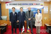 동네방네 김형규 기자 | 창원특례시는 24일 알레한드로 펠라에스 로드리게스(Alejandro Peláez Rodríguez) 주한 콜롬비아 대사가 창원시를 방문해 양국 간 산업·통상 협력과 글로벌비즈센터(GBC) 남미 거점 확장 방안을 논의했다고 밝혔다. 이번 방문은 지난 14일 열린 ‘창원시–콜롬비아 교류 간담회’의 후속으로, 창원의 조선·전기산업과 콜롬비아의 에너지·자원 산업을 연결하는 “실질 협력의 첫걸음”이자, 양국의 신뢰와 교류를 한층 더 깊게 하는 계기가 됐다. 알레한드로 펠라에스 로드리게스 주한 콜롬비아 대사는 창원의 기술력과 산업 기반에 깊은 관심을 표하면서, “콜롬비아가 추진 중인 ‘정의로운 에너지 전환(Just Energy Transition)’ 정책 속에서 창원의 기술은 매우 중요한 역할을 할 수 있다”고 강조했다. 장금용 창원특례시장 권한대행은 “창원은 산업의 도시이자 사람의 도시로, 기술과 신뢰가 연결될 때 두 나라의 거리는 더 가까워질 것”이라며, “글로벌비즈센터 남미 거점 추진을 통해 창원 기업들이 콜롬비아와 함께 성장할 수 있도록 하겠다”고 밝혔다. 한편, 콜롬비아는 남