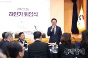 동네방네 김형규 기자 | 경상남도는 23일 도청 도정회의실에서 2025년도 하반기 퇴임식을 개최하고 오랜 기간 도정 발전에 헌신한 공직자들의 영예로운 퇴임을 기념했다. 이 자리에는 박완수 도지사, 퇴직공무원과 가족, 노동조합 및 동료 직원 등 120여 명이 참석해 퇴직자들의 노고를 격려하고 새로운 앞날을 응원했다. 행사는 식전 공연을 시작으로 공로패·감사패 수여, 퇴직자들의 소회와 동료 직원들의 응원을 담은 영상 시청, 후배 직원들의 축가 등으로 진행됐다. 퇴직자들은 소감을 통해 그간 묵묵히 지지해 준 가족에게 감사를 전하고, 함께 근무한 후배 공직자들에게는 경남 발전을 위해 계속 정진해 달라는 당부의 말을 건넸다. 박완수 도지사는 축사를 통해 “30년 이상 공직에 몸담으며 도민을 위해 헌신해 오신 여러분의 노고에 도민을 대표해 진심으로 감사드린다”며 “여러분이 남긴 발자취와 노력은 경남 도정의 역사로 남아 후배 공직자들에게 오래 기억될 것”이라고 말했다. 이어 “여러분의 헌신 뒤에는 늘 묵묵히 지지해 준 가족의 희생과 헌신이 있었다”며 “특히 바쁜 공직 생활 속에서도 가정을 지켜온 가족들에게도 깊