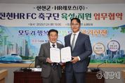 동네방네 김형규 기자 | 충북 진천군은 군청 소회의실에서 HR레포츠 주식회사(대표 신호룡)와 ‘진천 HR FC 축구단 육성 및 지원을 위한 업무협약’을 체결했다고 24일 밝혔다. 이번 협약은 2026년 대한축구협회 K4 리그 참가를 앞두고, 진천 HR FC의 안정적인 운영 기반을 마련하고, 지역 스포츠 발전을 위한 협력 체계를 구축하기 위해 추진됐다. 협약식에는 송기섭 진천군수와 HR레포츠(주) 신호룡 대표, 김화영 진천군 체육회장, 김중기 진천군 축구협회장 등 관계자들이 참석했다. 협약의 주요 내용은 △축구단 운영과 발전 지원 △유소년 축구 육성과 저변 확대 △지역사회 공헌 활동 △스포츠마케팅을 통한 지역 홍보 강화 등이다. 군은 이번 협약을 통해 지역 스포츠 브랜드 가치 제고, 군민 스포츠 관람 문화 정착, 유소년·생활 체육 연계 강화 등 다양한 효과를 기대하고 있다. 앞으로 군은 행정적·재정적 지원과 경기장 관련 시설 활용 지원 등에 협력하고, HR 레포츠는 선수단 운영, 스포츠마케팅, 유소년 프로그램 운영 등을 총괄하며 지역 축구 문화 확산에 힘쓸 예정이다. 송기