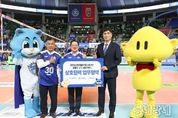 동네방네 김형규 기자 | 이장우 대전시장은 21일 대전충무체육관에서, 6개월간의 V-리그 대장정에 나서는 연고팀 대전 삼성화재 블루팡스의 승리를 기원하는 시구에 참여했다. 1세트 종료 후에는 삼성화재 블루팡스×꿈돌이 굿즈를 공동 브랜딩을 위한 상호협력 협약을 체결하고, 스포츠마케팅을 확장하기로 했다.