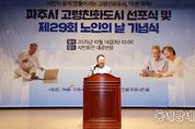 동네방네 김형규 기자 | 파주시는 지난 14일 파주시민회관 대공연장에서 ‘제29회 노인의 날 기념행사 및 세계보건기구(WHO) 인증 고령친화도시 선포식’을 성황리에 개최하고, 고령사회에 대응하는 파주시 복지정책 방향과 세대 간 공감의 문화를 확산하기 위한 뜻깊은 자리를 마련했다. 이번 행사는 김경일 파주시장을 비롯해 박대성 파주시의회 의장, 경기도 및 파주시의원, 노인 관련 유관기관장 등 400여 명이 참석해 시민 모두가 행복한 고령친화도시를 만들어가겠다는 의지를 다졌다. 이날 행사에서는 노인복지 유공자 54명에 대한 표창 수여와 함께 고령친화도시 선포, 축하공연 등이 이어져 풍성한 볼거리를 선사했다. 김경일 파주시장은 “파주시는 세계보건기구(WHO)로부터 고령친화도시로 공식 인증받은 것을 계기로, 어르신이 존중받고 시민 모두가 행복한 도시를 만들겠다”라며 “앞으로도 노인복지 증진과 세대 통합을 위한 다양한 정책 실현을 통해 파주시민 모두가 ‘파주에 살기를 참 잘했다’라고 말할 수 있도록 최선을 다하겠다”라고 밝혔다. 향후 파주시는 관내 노인 관련 유관단체와 적극 협력하여 어르신의 목소리에 귀 기울