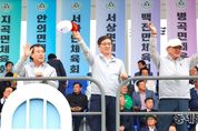 동네방네 김형규 기자 | 함양군은 군민의 소통과 화합, 건강 증진의 한마당인 ‘제64회 함양군민체육대회’가 지난 18일 함양공설운동장과 종목별 경기장에서 뜨거운 열기 속에 성공적으로 마무리됐다고 밝혔다. 함양군체육회가 주최하고 회원 종목단체에서 주관한 이번 대회는 11개 읍면에서 3,000여 명의 군민이 참가해 읍면 대항전 10개 종목과 클럽대항전 및 참여 경기 5개 종목에서 실력을 겨루며, 세대와 지역을 아우르는 소통과 화합의 장을 이뤘다. 대회는 11개 읍면이 저마다 준비한 개성 넘치는 입장식으로 막이 올랐다. 이어 전날(17일) 천령봉에서 채화된 성화는 군청 광장에 안치됐다가 대회 당일 공설운동장에 도착했으며, 강병구·이장겸 선수의 점화로 함양의 뜨거운 열정이 타올랐다. 성화 봉송은 ‘함양 정착, 도민체전 성적, 함양 축구 미래, 체육 원로, 축제 위원장’ 등 5대 테마로 구성되어 의미를 더했다. 개회식에서는 40명으로 구성된 함양군 라인댄스팀의 축하공연이 분위기를 돋우었고, 개회 선언을 시작으로 안병명 체육회장의 대회사, 진병영 함양군수의 격려사, 김윤택 의장 등의 축사와 양재생 부산상공회의