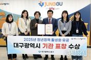 동네방네 김형규 기자 | 대구 중구는 ‘2025년 청년정책 활성화 유공’ 분야에서 대구광역시 기관 표창을 받았다고 밝혔다. 대구시는 청년정책 전담 부서를 신설한 2017년 이후, 우수한 청년정책 추진 성과를 거둔 기초자치단체를 대상으로 표창을 수여한다. 대구 중구는 청년 주거 안정과 경제적 부담 경감을 위해 청년 사업자 임대료 지원, 청년 부동산 중개보수 및 이사비 지원 등 지역 정착형 사업을 대구 지역 지자체 최초로 추진해 왔다. 또한 행정안전부 주관 ‘2025년 청년마을 만들기’ 공모사업에 선정돼 청년친화도시 기반을 마련했으며, 청년 소통과 교류의 거점인 중구 청년지원센터 ‘잇플’을 개소해 청년 활동 공간을 확충했다. 이와 함께 ‘중구 청년의 날’ 행사와 청년 팝업 클래스 등 청년 맞춤형 문화 행사를 운영하고, 2030 청년창업지원센터와 북성로 청년창업클러스터를 중심으로 청년 친화형 일자리 환경과 창업 기반을 구축하는 등 다양한 분야에서 청년을 위한 실질적인 정책을 추진했다. 아울러, 중구보건소와 대구행복기숙사 간 ‘청춘 心쿵 프로젝트’ 업무협약을 체결하는 등 청년 건강증진을 위한 정책도 병행