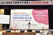 동네방네 김형규 기자 | (사)봉화군종합자원봉사센터는 12월 3일 봉화군민회관에서 지역 자원봉사자들의 노고를 격려하고 화합을 다지는 ‘2025 봉화군 자원봉사자대회 및 화합한마당’을 개최했다. 자원봉사단체 및 자원봉사자, 내빈 등 500여명이 참석한 가운데 진행한 이번 행사는 ‘자원봉사자대회’와 ‘자원봉사자 화합한마당’으로 구성됐으며, 한 해 동안 지역 곳곳에서 봉사활동을 실천해 온 자원봉사자들을 격려하고, 단체 간 교류와 소통의 장을 마련하기 위해 마련됐다. (사)봉화군종합자원봉사센터 김병남 이사장은 “금년 한 해 동안 어러운 여건 속에서도 묵묵히 봉사활동을 이어나간 자원봉사자분들께 감사드리며, 앞으로도 자원봉사자분들의 작은 손길들이 모여 봉화군이 더 살기 좋은 공동체로 성장할 수 있길 바란다”고 전했다.