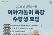 동네방네 김형규 기자 | 양평군은 새 학기를 맞아 양동도서관에서 초등학생을 대상으로 운영하는 ‘이야기 놀이 특강’의 수강생을 오는 22일부터 26일까지 모집한다고 밝혔다. 이번 특강은 옛 설화 속 주인공이 되어 또래와 협력해 이야기를 만들어 보는 스토리텔링 프로그램이다. 시나리오 속에서 나만의 캐릭터를 만들고 싶은 초등학교 3~6학년 학생이라면 누구나 신청할 수 있다. 강좌는 3월 11일 오후 3시 30분부터 약 3시간 동안 참여형 프로그램으로 진행되며, 장소는 양동도서관 3층 강의실이다. 전진선 양평군수는 “앞으로 양동도서관이 어린이들에게 다양한 독서문화 프로그램을 제공하고, 이번 특강이 초등학생들의 문해력 향상에 도움이 되기를 바란다”고 전했다.