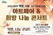 동네방네 김형규 기자 | 파주시가 주최하고 ㈔한국예술문화단체총연합회 파주지회에서 주관하는 '2025 제6회 ‘희망, 나눔’ 파주 아트페스티벌'이 10월 22일부터 24일까지 3일간 운정행복센터에서 개최된다. 올해로 6회를 맞이한 이번 축제는 다양한 분야의 예술을 매개로 온정을 나누고 희망과 행복을 전하기 위해 마련됐으며, 축제를 통해 발생한 수익금은 어려운 이웃에게 전달되고 있다. 축제 기간 동안 운정행복센터에 파주예총 전문 예술인들의 미술, 사진, 시화 작품 등을 전시하고 판매하는 공간이 운영되며, 23일과 24일에는 지역 예술인 및 초청 가수(전원석, 이규석, 녹색지대)들의 공연 ‘희망, 나눔 콘서트’가 개최된다. 공연 시작 전에는 무료로 가족사진 찍어주기 행사가 진행될 예정이다. 유초자 문화예술과장은 “이번 축제가 어려운 환경에 있는 이웃에게 나눔을 전하는 계기가 되기를 소망한다”라며, “일상 속에서 예술을 가까이 만날 수 있는 이번 축제에 시민 여러분의 많은 관심과 참여를 바란다”라고 말했다.