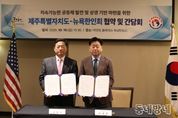 동네방네 김형규 기자 | 제주특별자치도가 미국 동부 50만 한인을 대표하는 뉴욕한인회와 손잡고 경제·관광·문화·교육 분야 글로벌 협력 네트워크를 본격 가동한다. 제주도는 19일 오후 4시(현지시간) 미국 워싱턴DC 소재 하얏트 플레이스 호텔에서 뉴욕한인회와 상생 교류발전 업무협약을 체결했다. 뉴욕한인회는 뉴욕 대도시권과 뉴저지, 코네티컷 일부 지역 약 50만 한인을 대표하는 비영리단체로 한인 권익보호와 문화·경제·교육·복지사업, 이민자 지원 등을 담당한다. 제주도가 미주지역 한인회와 협약을 맺은 것은 지난해 10월 미주한인회총연합회에 이어 두 번째다. 협약식에는 오영훈 지사와 이명석 뉴욕한인회장을 비롯한 양측 관계자 20여 명이 참석해 다양한 분야에 대한 구체적인 협력방안을 논의했다. 주요 내용은 △제주형 휴가지 원격근무(워케이션)·배움여행(런케이션) 프로그램 홍보 및 참여 촉진 △관광·지역경제 활성화를 위한 네트워크 협력 사업 △협약기관 간 지속가능한 공동체 발전 및 상생 기반 마련 등이다. 오영훈 지사는 “뉴욕한인회와의 업무협약은 한인사회 발전과 고국 연결을 강화하는 계