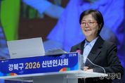 동네방네 김형규 기자 | 서울 강북구는 지난 9일 강북문화예술회관 강북소나무홀에서 ‘2026 강북구 신년인사회’를 개최하고, 주민 및 지역 인사들과 새해 인사를 나눴다. 이날 행사에는 국회의원, 교육감, 당협위원장, 시·구의원, 주민 등 700여 명이 참석했으며, 강북구시니어합창단과 강북구여성합창단의 아름다운 화음이 어우러진 식전공연으로 행사의 문을 열었다. 이후 국민의례, 주민 새해소원 영상 상영, 신년 덕담, 구청장 신년사 순으로 행사가 진행됐다. 특히 행사 중 상영된 구민 새해소원 영상에는 강북구에서 꿈과 희망을 품고 살아가고 있는 이웃들의 새해를 맞는 기대와 바람이 생생하게 담겨, 참석자들의 공감을 이끌었다. 이어진 신년 덕담 시간에는 서로의 안녕과 희망을 전하며 새해를 맞이하는 따뜻한 분위기가 이어졌다. 이순희 강북구청장은 신년사를 통해 “그동안 다져온 행정의 기반을 바탕으로, 2026년에는 구민의 일상 속에서 변화를 만들어가는 한 해가 되도록 하겠다”며, 혁신과 성장, 상생과 복지, 자연과 웰니스, 문화와 경제를 중심으로 한 구정 운영 방향을 설명했다. 구는 올해