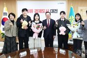 동네방네 김형규 기자 | 대전시는 20일 시청 응접실에서 청년만남지원사업 ‘연(連) In 대전’을 통해 부부의 연을 맺게 된 결혼 1·2호 커플을 초청해 축하 티타임을 가졌다. ‘연(連) In 대전’은 청년 간 건전한 교류와 자연스러운 만남을 지원해 사회적 네트워크 확장을 돕기 위해 2025년 신규로 추진된 사업으로, 지난해 총 19회차 프로그램을 운영해 744명이 참가했으며, 누적 118쌍의 커플이 탄생했다. 이 가운데 3쌍은 결혼으로 이어지는 결실을 맺었으며, 이번에 초청된 1·2호 커플은 올해 상반기 중으로 결혼을 앞두고 있다. 또 다른 1쌍도 내년 상반기 결혼을 예정하고 있어, 단순한 만남 지원을 넘어 실제 혼인으로 이어졌다는 점에서 정책적 성과를 보여주고 있다. 이날 티타임에 참석한 결혼 1·2호 커플은 이장우 시장과 환담을 나누며 프로그램 참여 소감과 향후 계획 등을 공유하는 시간을 가졌다. 행사 말미에는 기념촬영을 진행해 청년 부부의 새로운 출발을 함께 축하했다. 이장우 대전시장은 “‘연(連) In 대전’을 통해 인연을 맺고 부부가 되는 두 커플을 만나 매우 기쁘고 뿌듯하다”며 “대전에