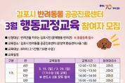 동네방네 김형규 기자 | 김포시는 반려동물 공공진료센터 연계 프로그램인 ‘반려견 행동교정교육’ 제1기 참여자를 모집한다고 밝혔다. 해당 교육은 반려견의 문제행동을 개선하고 이웃과 상생하는 건강한 반려문화를 조성하기 위해 지난해부터 운영해 온 프로그램이다. 시민들의 높은 관심과 호응에 힘입어 올해 보다 체계적이고 내실 있는 교육과 맞춤형 지도를 이어갈 예정이며, 교육은 연간 총6기, 12회(기수당 2회)로 나뉘어 운영될 계획이다. 1기 교육은 3월 15일, 3월 29일 총2회에 걸쳐 진행된다. 1회차는 실내교육으로 가정에서 나타나는 습관적 문제행동의 원인을 분석하고 맞춤 교정훈련을 실시하며, 2회차는 실외교육으로 1회차 훈련 행동 점검 및 산책 방법, 사회화 교육을 중심으로 운영할 계획이다. 특히 이번 교육은 '개는 훌륭하다', '동물농장' 등 다수 프로그램에서 반려견 행동 교정을 지도해 온 ‘권혁필 행동교정사’와 함께한다. 반려견의 습관적 행동의 원인을 면밀히 분석해 생활 습관은 물론 양육 환경까지 개선할 수 있도록 2:1 맞춤형으로 진행된다. 반려견의 행동 교정이 필요한 김포시민이라면 누구나 신청
