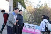 동네방네 김형규 기자 | 이상일 용인특례시장이 7일 아침 성복고등학교 정문 앞에서 ‘개인형 이동장치(PM·Personal Mobility)’ 안전 캠페인에 참여해 안전한 등굣길 조성을 위한 소통 행보를 펼쳤다. 성복고등학교 학부모와 용인서부 녹색어머니회 측의 요청으로 캠페인에 참여한 이 시장은 성복고등학교 학생들이 안전하게 개인형 이동장치를 이용할 수 있도록 이용 수칙과 교통사고에 대한 경각심을 알렸다. 또 현장에서 교통지도에 나선 봉사자들을 격려하고, 학교 관계자·학부모와 함께 학교 주변에 마련된 시설들을 점검했다. 캠페인에는 이상일 시장과 성복고등학교 교직원, 성복고등학교 학부모회, 용인서부경찰서와 용인서부 녹색어머니회 회원, 모범운전자회 등 30여 명이 참여했다. 참가자들은 등교하는 학생들에게 ▲안전모 착용 ▲무면허 운전 금지 ▲승차 인원 준수 등 개인형 이동장치를 이용할 때 반드지 지켜야 하는 안전 수칙을 전달했다. 안전 캠페인이 끝난 후 이 시장은 교통지도 봉사에 나선 성복고등학교 교직원과 학부모회, 녹색어머니회, 모범운전자회 회원들과 안전한 등굣길 조성을 위한 의견을 교환했다