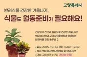 동네방네 김형규 기자 | 고양특례시는 반려식물의 건강한 겨울나기를 위한 맞춤 해법을 제공하는 ‘그린케어, 겨울 대비 반려식물 돌보기 행사’를 오는 10월 23일 오후 2시부터 5시 30분까지 백마 화사랑에서 개최한다고 밝혔다. 먼저 백마 화사랑 야외 공간에서는 고양시식물병원 전문가가 상주해 시민이 직접 가져온 반려식물에 대해 1:1 현장 진단을 제공하고, 병해충, 과습 등 식물의 상태에 따라 분갈이, 영양제 처방 및 맞춤형 월동 관리법을 안내한다. 별도 신청 없이 당일 현장 접수로 참여 가능하다. 실내에서는 ‘반려식물 동절기 핵심 관리법’을 주제로 체험형 특강이 진행된다. 겨울철 생육 관리 요령, 휴면기 대비 가지치기 및 분갈이 실습 등 내년 봄의 성장을 위한 전문적인 지식을 습득할 수 있다. 특강은 백마 화사랑 누리집에서 선착순 12명까지 신청할 수 있다. 시 관계자는 "겨울은 식물이 가장 취약해지는 시기인 만큼, 이번 행사를 통해 전문가의 과학적인 진단과 맞춤형 솔루션으로 반려식물과 더욱 건강하고 풍요롭게 겨울을 나시길 바란다”고 전했다. 행사에 대한 자세한 내용과 특강 신청은 백마 화사랑 누리