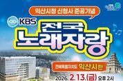 동네방네 김형규 기자 | KBS 전국노래자랑 무대가 익산을 찾아온다. 익산시는 오는 2월 13일 익산시실내체육관에서 전국노래자랑 '익산시 편'이 공개 녹화로 진행된다고 19일 밝혔다. 방송은 3월 말께 전국에 방영될 예정이다. 이번 무대는 시민의 염원이었던 익산시 신청사 개청을 다함께 축하하고, 힘찬 출발을 알리기 위해 마련됐다. 초대 가수로 박상철과 서주경, 양지은, 정서주, 김용빈이 출연해 축하 무대를 꾸민다. 본선 무대에는 예선을 통과한 15~17팀의 시민 참가자가 무대에 오르게된다. 참가 신청은 오는 23일부터 2월 5일까지 읍·면·동 행정복지센터 또는 시 행정지원과에서 선착순 300명까지 가능하다. 예심은 2월 11일, 솜리문화예술회관에서 열린다. 시 관계자는 "신청사 준공은 익산의 미래를 여는 상징적인 순간"이라며 "전국노래자랑을 통해 시민과 함께 신청사 개청을 축하하고, 익산의 밝은 에너지를 전국에 전하겠다"고 말했다.