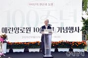 동네방네 김형규 기자 | 김제시는 용지면 소재 애린양로원(원장 한종욱)이 개원 100주년을 맞아 ‘100년의 헌신과 동행’이라는 주제로 22일 기념행사를 개최했다고 밝혔다. 이날 행사는 사회복지 관계자, 지역주민, 후원자 및 자원봉사자 등 약 300여 명이 참석한 가운데 애린양로원 야외공연장에서 진행됐다. 식전공연, 개회선언에 이어 사회복지법인 애린원 한규택 대표이사의 기념사를 시작으로 각계 인사의 축사가 이어졌다. 특히 애린양로원의 어르신 복지향상과 기관 발전에 기여한 단체 및 직원 등을 대상으로 전북특별자치도지사 표창, 김제시장 표창 등 총 8개의 수상이 이뤄져 기쁨의 영광을 누렸다. 한종욱 원장은 “오늘의 영광은 지난 100년간 함께해주신 모든분들의 헌신 덕분”이라며 “앞으로도 어르신들의 품격 있는 삶과 행복을 위해 한결같은 마음으로 노력하겠다”고 밝혔다. 정성주 김제시장은 “김제의 자랑스러운 애린양로원이 창립 100주년을 맞이하게 된 것을 진심으로 축하드린다.”며, “앞으로의 100년도 지역사회와 함께 숨 쉬며, 든든한 복지의 중심으로 우뚝 서기를 기대한다.”고 전했다.