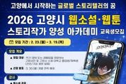 동네방네 김형규 기자 | 고양산업진흥원이 웹콘텐츠 산업을 이끌어갈 스토리 전문 인재 발굴을 위한 ‘2026 고양시 웹소설·웹툰 스토리작가 양성 아카데미’ 교육생을 모집한다. 이번 교육과정은 진흥원과 스토리 콘텐츠 분야 전문가들로 구성된 한국만화스토리협회와 협업해, 고양시 작가 지망생들의 데뷔를 목표로 이도경, 김양수, 송향희 등 현역 작가들이 다양한 창작 노하우를 공유할 예정이다. 스토리 작가 데뷔에 관심 있는 고양시민, 고양시 소재 대학교 재학생·졸업생을 대상으로 하며, 오는 3월 19일까지 이메일로 신청하면 된다. 교육은 4월 10일부터 매주 금요일 총 10회에 걸쳐 진행되며, 자세한 내용은 포스터 내 QR코드 또는 진흥원 누리집에서 확인할 수 있다. 진흥원은 웹툰·웹소설 등 부가가치가 큰 웹콘텐츠 IP를 발굴하고, 우수한 창작 인재 양성을 위한 교육 사업을 추진하고 있다. 특히 ‘IP융복합 콘텐츠 클러스터’조성을 통해 고양시 특화 웹콘텐츠 산업을 지속적으로 육성해 나갈 계획이다.