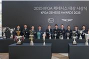 동네방네 김형규 기자 | 12일 서울 서대문구 소재 스위스 그랜드 호텔 서울에서 2025 시즌 KPGA 투어의 대미를 장식하는 자리인 ‘2025 KPGA 제네시스 대상 시상식’ 행사를 앞두고 포토콜이 진행됐다. 이날 포토콜에는 ‘제네시스 대상’ 옥태훈(27.금강주택)이 부상으로 제공되는 제네시스 GV70 앞에서 다양한 포즈를 취하며 ‘2025 KPGA 제네시스 대상 시상식’의 시작을 알렸다. 이어 ‘제네시스 대상’ 옥태훈를 비롯해 개막전 ‘제20회 DB손해보험 프로미 오픈’ 우승자이자 제네시스 포인트 2위 김백준(24.team속초아이), ‘2025 우리금융 챔피언십’ 챔피언이자 제네시스 포인트 3위 이태훈(35.캐나다), 제네시스 포인트 4위 최진호(41.코웰), ‘KPGA 클래식’ 우승자 배용준(25.CJ), ‘제44회 GS칼텍스 매경오픈’과 ‘KPGA 파운더스컵’에서 2승을 기록한 문도엽(34.DB손해보험), ‘더채리티클래식 2025’ 챔피언 최승빈(24.CJ), 그리고 제네시스 포인트 8위에 위치한 송민혁(21.CJ)까지 8명의 제네시스 포인트 TOP10 선수들이 제네시스 포인트 TOP10 보드 앞에서 다양한 포즈를