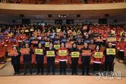 동네방네 김형규 기자 | 홍성군은 지난 9일 홍주문화회관에서 산불 예방인력 및 관계 공무원 등 400여 명이 참석한 가운데 ‘2026년 산불 지킴이 발대식’을 개최하고 본격적인 산불 방지 총력 대응에 돌입했다. 이날 발대식에는 명예산불감시원을 비롯해 산림재난대응단, 산불감시원 및 산불진화단(공무원진화대) 등 홍성군의 산불 방지 핵심 인력이 총출동했다. 참석자들은 결의문 낭독을 통해 산불 예방 활동에 앞장설 것을 다짐하며 ‘산불 ZERO 홍성군’을 위한 강력한 의지를 표명했다. 군은 위촉된 명예산불 감시원들에게 산불 근무복과 전자 호루라기를 제공하여 현장 대응력을 높였으며, 이어진 산불방지 교육을 통해 산불 발생 시 신고 요령, 안전 수칙, 초동 진화 방법 등 실무 위주의 전문 교육을 실시했다. 이용록 홍성군수는 인사말을 통해 “산불은 예방이 최우선이며, 마을 실정을 잘 아는 명예 산불감시원과 산림재난대응단 여러분의 역할이 무엇보다 중요하다”고 강조하며, “군민 모두가 경각심을 가지고 소중한 우리 산림을 지키는 데 적극 동참해 달라”고 당부했다.
