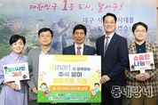 동네방네 김형규 기자 | 대구 달서구(구청장 이태훈)는 대구광역시사회복지협의회와 이마트로부터 추석맞이 명절키트 100세트(약 700만원 상당)를 기탁받았다고 29일 밝혔다. 이번 나눔은 복지 사각지대 해소와 한가위 이웃사랑 실천을 위해 마련됐다. 김석표 회장은 “달서구의 어려운 이웃들이 풍성한 명절을 보낼 수 있도록 작은 힘을 보태고자 했다”며 “앞으로도 이마트와 함께 지속적인 사회공헌 활동을 이어가겠다”고 말했다. 이태훈 달서구청장은 “어려운 여건 속에서도 따뜻한 나눔을 실천해 주신 대구광역시사회복지협의회와 이마트에 감사드린다”며 “소중한 후원품을 필요한 가정에 신속하고 투명하게 전달하겠다”고 전했다.