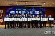 동네방네 김형규 기자 | 서천군은 지난 26일 충남도청에서 김태흠 충남도지사, 유재영 부군수, ㈜오피렉스 윤지혁 대표 등 관계자가 참석한 가운데 의약외품 및 의료기기 제조 전문기업 ㈜오피렉스와 121억원 규모의 합동 투자협약을 체결했다. ㈜오피렉스는 오피폼, 드레시엘솝, 운드드레싱, 창상피복제 등 상처 치료용 의료소모품을 전문 생산하는 기업으로, 장항국가생태산업단지 내 1만4,907㎡(약 4,500평) 부지에 121억원을 투자해 신규 공장을 설립할 계획이다. 이를 통해 25명의 신규 고용을 창출하며 지역 산업 경쟁력 강화에 기여할 것으로 기대된다. 이날 협약식에서 윤지혁 대표는 “장항국가생태산업단지의 우수한 입지 여건과 서천군의 적극적인 행정 지원이 투자 결정에 큰 도움이 됐다”며 “신규 공장 설립을 통해 고품질 의료소모품 생산 역량을 강화하고, 지역 인재 채용과 상생 발전으로 서천군 지역경제에 활력을 더하는 기업이 되겠다”고 밝혔다. 서천군은 장기적인 경기 불황으로 내수경제가 침체된 상황 속에서도 이번 투자가 지역경제 활성화에 긍정적인 파급 효과를 가져올 것으로 평가했다. 유재영 부군