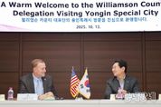 동네방네 김형규 기자 | 이상일 용인특례시장이 13일 용인의 자매도시인 미국 텍사스주 윌리엄슨카운티의 대표단과 만나 양 도시의 발전을 위한 협력 방안을 논의했다. 이날 시청 접견실에서 이 시장은 스티븐 스넬(Steven Snell) 윌리엄슨카운티장과 러스 볼즈(Russ Boles) 윌리엄슨카운티 커미셔너, 데이브 포터(Dave Porter) 윌리엄슨카운티 경제개발파트너십 전무이사를 만나 경제와 산업, 교육 등 다양한 분야에 대해 의견을 나눴다. 이날 이상일 시장을 만난 스티븐 스넬 윌리엄슨카운티장은 전임자인 빌 그래벨(Bill Gravell) 윌리엄슨카운티장에 이어 지난 4월 신임 윌리엄슨카운티장으로 취임했다. 이상일 시장은 “양 도시는 도시 이름을 붙인 명예도로명을 부여하면서 우정을 쌓고, 교류협력을 활발하게 하고 있다”며 “윌리엄슨카운티 대표단과 텍사스 주립대학교 관계자들이 용인에 있는 단국대학교 관계자를 만나 협력관계 구축에 대한 논의를 진행하는 것으로 알고 있는 데 양 도시에 있는 대학이 교류하는 것은 매우 뜻 깊은 일”이라고 말했다. 이 시장은 “윌리엄슨카운티에는 첨단산업 관련 기업들의 입
