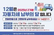 동네방네 김형규 기자 | 평택시는 2025년 12월 정기분 자동차세 16만 5천 건에 대해 199억 원을 부과·고지하고 납부 기한 내 납부하도록 적극적인 홍보에 나섰다고 밝혔다. 자동차세는 연 2회(6월, 12월) 부과하는 정기분 세목으로, 이번 제2기분 자동차세 부과 대상은 과세기준일인 12월 1일 현재 평택시에 등록되어있는 자동차, 이륜차, 건설기계 등이며, 7월 1일부터 12월 31일까지의 보유기간에 대해 차량의 용도와 차종, 배기량, 차령에 따라 세액을 차등 적용하여 부과한다. 아울러, 연세액 10만 원 이하의 경차·화물차·승합차량은 6월에 전액 과세하나 6월 이후에 취득했다면 이번 제2기분 과세 대상에 포함되며, 자동차세를 연납한 차량은 이번 과세 대상에서 제외된다. 납부 기한은 12월 16일부터 31일까지이고, 고지서는 우편 발송되며 전자고지 신청자는 전자우편 또는 모바일 앱에서 확인이 가능하다. 납부는 ‘지방세입계좌’ 서비스를 통해 이체 수수료 없이 납부할 수 있으며, 이외에도 전국 금융기관 방문 혹은 은행 자동화기기(CD/ATM) 등에서도 고지서 없이 신용카드 또는 통장으로 납부할 수