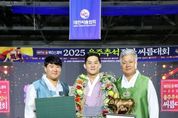 동네방네 김형규 기자 | 증평군청 인삼씨름단(감독 연승철, 코치 서수일) 소속 이완수 선수가 울산광역시 울주군 울주종합체육관에서 열린 ‘위더스제약 2025 울주추석장사씨름대회’에서 소백장사(72kg이하) 타이틀을 거머줬다. 이완수 선수는 4일 열린 결승전에서 울주군청 소속 김덕일 선수를 접전 끝에 3-2로 제압, 개인 통산 세 번째 장사에 오르는 영예를 안았다. 이 선수는 8강에서 임주성(MG새마을금고씨름단), 4강에서 이현서(의성군청) 선수를 각각 2-1로 승리하며 결승에 진출했다. 결승전에서는 홈그라운드 이점을 안고 나온 김덕일 선수에게 초반 두 판을 내줬으나, 3판째 김 선수의 경고패로 한 점을 만회하며 분위기를 바꿨다. 이후 두 판 연속 강력한 잡채기로 상대를 넘어뜨리며 극적인 역전승을 거뒀다. 이번 우승으로 이 선수는 지난 ‘2025 설날장사씨름대회’ 소백장사에 이어 올 시즌 2관왕을 달성, 씨름 명문 증평군청 인삼씨름단의 위상을 다시 한 번 높였다. 연승철 감독은 “증평군민들에게 추석장사씨름대회에서 승리의 소식을 안겨주게 돼 매우 기쁘다”며 “이번 대회 남은 체급에서도 좋은