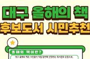 동네방네 김형규 기자 | 대구광역시는 책 읽는 도시 조성을 위해 매년 ‘대구 올해의 책’ 10권을 선정·홍보하고 있다. 올해는 대구도서관 개관을 계기로 시민 참여를 더욱 확대하고자 시민추천단을 운영하여 시민 관심도와 참여도를 한층 높일 계획이다. 2026년 ‘대구 올해의 책’ 선정은 △도서추천단 후보도서 추천 △도서선정위원회 심의 △온라인 시민투표 및 최종 도서 선정의 방식을 거치게 된다. 도서추천단에는 분야별 독서 전문가, 구·군 및 교육청 대표사서, 시민, 지역출판협동조합 등 다양한 주체가 참여한다. 시민추천단은 대구도서관 누리집을 통해 대구시민이라면 누구나 참여 가능하며, 어린이·청소년·성인 분야별로 1권씩 총 3권까지 추천할 수 있다. 추천 대상 도서는 △국내 작가가 발간한 2년 이내 단행본 △사회적으로 공감할 수 있는 주제의 도서 △스테디셀러로 자리매김할 수 있는 도서여야 한다. 다만 종교·정치 성향 도서와 과거 ‘대구 올해의 책’ 선정 도서는 제외된다. 추천 기간은 2월 24일 오후 6시까지다. 시민추천단이 추천한 도서는 상위 30권을
