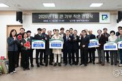 동네방네 김형규 기자 | 병오년 연초부터 광주 남구청에 이웃사랑 실천을 위해 기부에 나서는 천사들의 발걸음이 줄을 잇고 있다. 20일 남구(구청장 김병내)에 따르면 새해 첫 번째 ‘큰 기부, 작은 전달식’이 지난 19일 오전 구청 6층 중회의실에서 열렸다. 전달식에는 김병내 구청장을 비롯해 더선 요양병원과 (사)광역광역시 장애인권익협회, 방림동 무등산 센트럴파크 아파트 입주자 대표회의, 입석 로터리클럽, 한국우리밀농업협동조합, 구립 늘봄 어린이집 관계자 27명이 참석했다. 이날 구청에 접수된 현금 및 물품은 1,335만원 상당에 달한다. 더선 요양병원 김수영 이사장과 직원들은 십시일반으로 모은 447만원을 기부했으며, (사)광주광역시 장애인 권익협회 김선옥 회장 및 관계자도 마스크 5만장을 후원했다. 또 방림동 무등산 센트럴파크 아파트 입주자협의회 서동열 회장과 조봉태 감사도 현금 100만원을 쾌척했으며, 입석 로터리클럽 김한철 회장과 조상균 차기 회장 등도 300만원 상당의 전기 장판 18개 및 쌀 10㎏ 20포를 기부했다. 이와 함께 효천지구 중흥S클래스 리버티 아파트에