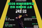 동네방네 김형규 기자 | 전주시와 (사)라스트포원(대표 조성국)은 오는 3월부터 5월까지 운영되는 상반기 전주브레이킹스쿨 수강생을 선착순 모집한다고 20일 밝혔다. ‘전주브레이킹스쿨’은 전북을 대표하는 비보이 전문예술법인인 (사)라스트포원과 전주시가 브레이킹 저변 확대와 관련 분야 인재 양성을 위해 함께 운영하는 비보이문화학교로, 시민 누구나 브레이킹을 쉽고 안전하게 접할 수 있도록 생활체육·문화예술 교육 기회를 무료로 제공하는 것이 특징이다. 교육 내용은 △기초 리듬트레이닝 △브레이킹 기본 동작 △신체 능력 강화 △바닥동작(플로워 댄스) 등 입문자도 따라 하기 쉽도록 구성될 예정이다. 교육 기간은 3월부터 5월까지 3개월 과정으로, 매주 1회 오후 7시 운영한다. 수업은 청소년반(10세~19세, 화요일)과 성인취미반(20세~45세, 수요일)으로 나뉘어 진행되며, 반별 모집 인원은 20명 내외다. 교육은 전주역 앞 첫마중길에 위치한 전주브레이킹스쿨 비보이연습공간(백제대로825 지하)에서 이뤄진다. 교육 신청은 라스트포원스쿨 누리집 또는 포스터 QR코드를 통해 가능하며, 모집 인원 충원