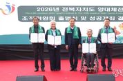 동네방네 김형규 기자 | 진안군은 5일 군청 광장에서 2026년 개최 예정인 전북자치도 양대체전의 성공적인 개최를 다짐하는 조직위원회 출범식 및 성공개최 결의대회를 열었다. 이번 행사는 진안군 역사상 최초로 개최되는 제63회 전북특별자치도민체육대회(2026. 9. 4.~9. 6.)와 제20회 전북특별자치도민장애인체육대회(2026. 9. 18.~9. 20.)의 성공 개최를 위해 마련된 자리로 2026년 전북자치도 양대체전 조직위원, 범군민참여위원, 진안군민 등 약 500여 명이 참석했다. 행사는 식전공연을 시작으로 ▲조직위원 위촉장 수여 ▲기념사 및 축사 ▲준비상황 보고 ▲결의문 낭독 ▲성공개최 퍼포먼스 순으로 진행됐다. 이날 결의대회에서는 ‘생태치유 진안에서 하나되는 전북도민’을 슬로건으로, 군민 모두가 주인이 되는 대회를 만들겠다는 다짐이 이어졌다. 행사 후에는 체전 성공개최를 염원하는 ‘군민 걷기행사’가 이어져 출범식 분위기를 한층 고조시켰다. 특히, 진안군은 이번 대회를 인근 지역과의 긴밀한 협력체계 구축과 체육 인프라 확충 노력을 통해 성사시켰다는 점에서 주목받고 있다. 이는 지역 간 상생과