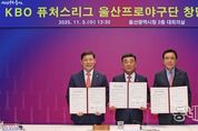 동네방네 김형규 기자 | KBO와 울산광역시(시장 김두겸)는 11월 5일(수) 울산시청에서 KBO 퓨처스리그 참가 협약을 체결했다. 이번 협약을 통해 울산시는 2026년 KBO 퓨처스리그 참가를 위한 선수단 구성과 행정절차를 KBO와 협의해 추진해나갈 예정이다. 또한, 문수야구장 관중석과 실내연습장 증설 및 유스호스텔을 2027년까지 완공하여 팀 훈련과 경기 진행, 선수단 숙소로 활용하는 등 안정적인 퓨처스리그 팀 운영 기반을 갖출 계획이다. KBO는 이번 협약이 지방자치단체가 주체가 되어 프로야구에 참여하는 의미 있는 사례로, 야구저변확대와 선수, 코칭스태프, 프런트 등 다양한 분야의 고용 창출 등을 통한 지역경제 활성화는 물론, 지역민들의 스포츠 관람 및 문화 향유 기회를 더욱 넓히는 계기가 될 것으로 기대하고 있다. KBO 이사회를 통해 울산시의 합류가 확정되면 퓨처스리그 남부리그에 편성될 예정이며, 2026 시즌부터 퓨처스리그는 북부 6팀, 남부 6팀 체제(현재 북부 5팀, 남부 6팀)로 재편해 리그 운영과 경기수 편성의 균형을 맞출 예정이다. 김두겸 울산광역시장은 “야구 열기가