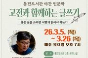 동네방네 김형규 기자 | 김포시 통진도서관은 고전 중심의 독서법과 글쓰기를 알려주는 야간 인문학 프로그램 ‘고전과 함께하는 글쓰기’를 오는 3월 5일부터 3월 26일까지 매주 목요일 오후 7시에 통진도서관 세미나실에서 운영한다고 밝혔다. '고전 한 책 깊이 읽기'의 저자 이권우는 ‘고전과 함께하는 글쓰기’를 통해 맹자의 철학과 중용을 깊이 있게 다루며, 책을 읽으면서 생각을 확장하는 독서법과 단락 중심의 글을 쓰는 방법을 총 4회차에 걸쳐 진행한다. 회차별 주제는 ▲고전 속 맹자의 철학 ▲맹자가 알려주는 우리 시대의 관계성 ▲글쓰기가 쉬워지는 독서법 ▲글쓰기의 첫걸음이다. 참여를 원하는 경우 오는 2월 10일 오전 10시부터 통진도서관 누리집 또는 전화로 신청할 수 있으며, 고전과 글쓰기에 관심있는 성인 20명을 선착순으로 모집한다.