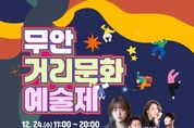 동네방네 김형규 기자 | 전남 무안군은 오는 24일 남악 중앙공원 일원에서 무안거리문화예술제를 개최한다. 무안거리문화예술제는 ‘문화 캔버스 – 도시, 예술로 물들다’ 라는 주제로 기존의 음악 공연 중심 거리예술에서 벗어나 다양한 분야의 지역예술가와 군민이 함께 어우러지는 참여형 문화예술제로 마련됐다. 일상 속 거리 공간을 예술로 채워 군민들에게 색다른 문화 향유 기회를 제공하는 것이 이번 행사의 가장 큰 특징이다. ▲무안군립국악원과 무안국악협회가 선보이는 ‘국악한마당’을 시작으로 ▲관내 청소년이 꾸미는 ‘꿈나무 콘서트’ ▲어린이들을 위한 ‘책 읽어주는 산타할머니’ ▲가족 단위 관람객이 함께 즐길 수 있는 ‘밖으로 나온 영화관’ 등 남녀노소 모두가 즐길 수 있는 프로그램으로 풍성하게 구성됐다. 또한 가수 경서, 정재욱과 뮤지컬 가수 루이스초이, 박소연 등이 출연하는 뮤직콘서트가 펼쳐져 연말 분위기를 한층 고조시킬 예정이다. 그 밖에도 관내 작가들과 함께하는 컵·접시 만들기, 크리스마스 리스 만들기, 캘리그라피 달력만들기, 솟대 만들기 등 다양한 체험 프로그램이 운영되며, 목포대학교 미술학과 학생들과