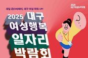 동네방네 김형규 기자 | 대구광역시는 여성들의 다양한 취·창업 기회를 지원하고, 경력단절 여성의 사회 복귀를 돕기 위해 ‘2025 대구 여성행복 일자리박람회’를 오는 9월 26일부터 27일까지 양일간 엑스코 동관(전시 5홀)에서 개최한다. 이번 박람회는 ‘여성UP포럼’과 연계해 진행된다. 대구시가 주최하고, 여성취업지원 전문기관인 여성새로일하기센터 대구 지역 5곳(남부·달서·대구·수성·신달서)이 공동 참여하는 이번 박람회에는 출산·육아 등으로 경력이 단절돼 재취업을 꿈꾸는 여성은 물론, 청년 및 중·장년층 여성들에게도 구인 기업과의 현장채용 및 간접채용의 기회를 제공한다. 박람회는 ▲새일홍보관 ▲취업지원관 ▲채용지원관 ▲협력지원관 ▲경력단절예방관 ▲부대행사관 등 6개 영역으로 운영된다. ‘새일홍보관’에서는 새일센터 취업지원 사업과 새일센터 직업교육훈련 과정을 안내하며, ‘취업지원관’에서는 각 센터별 취업 상담사가 박람회에 방문한 구직 여성들에게 채용 정보를 제공한다. ‘채용지원관’에서는 15개 기업이 직접 참여해, 인사 담당자와 구직 여성 간 1:1 현장면접을 통해 118명을 채용할