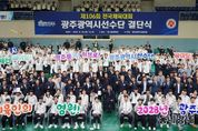동네방네 김형규 기자 | 광주광역시체육회(회장 전갑수)가 26일 오후 2시 빛고을체육관에서 ‘제106회 전국체육대회 광주선수단 결단식’을 열어 대회 필승을 위한 각오를 다졌다고 밝혔다. 이날 행사에는 전갑수 체육회장, 김영문 광주시 문화경제부시장, 서용규 광주시의회 부의장, 이정선 광주시교육감을 비롯한 종목단체 회장, 임원, 육성학교장 등 관계자 400여 명이 참석해 광주시 대표선수단의 선전을 기원하며 격려했다. 행사는 사전공연, 전국체전 참가계획 보고, 대표선수 훈련영상 시청, 선수단기 수여, 선수대표 선서, 응원 메시지 및 격려금 전달 등의 순으로 진행됐다. 이날 선수 선서에는 육상 이재성(광주시청)과 양궁 오예진(광주여대 4년)이 함께 나서 선수단을 대표해 필승 결의를 다졌다. 광주선수단은 이번 부산 전국체전에서 육상 남자 400m 계주(광주시청) 5연패에 도전한다. 또 지난해 제105회 체전에서 대회 4관왕에 오른 육상 고승환과 한국 근대5종 간판 전웅태(이상 광주시청)가 국가대표로서의 기량을 선보인다. 역도 국가대표 손현호(광주시청)와 여고부 농구 강호 수피아여고 등도 출전해 시‧도 종합득점 30,00