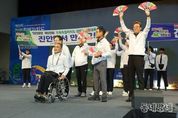 동네방네 김형규 기자 | 전북 고창군이 26일 오후 고창군립체육관에서 ‘제19회 전북특별자치도장애인체육대회’ 개회식을 성대하게 개최하고 본격적인 대회의 시작을 알렸다. 이번 장애인체전은 ‘행복도시 고창에서 감동가득 희망체전’이라는 슬로건 아래 28일까지 고창군 일원에서 열린다. 전북 14개 시군에서 선발된 약 2000명의 선수단과 임원이 참가해 게이트볼, 태권도, 보치아, 탁구, 론볼 등 15개 종목에서 갈고닦은 기량을 겨루며 열정과 도전의 스포츠 정신을 펼칠 예정이다. 개회식은 고창군을 대표하는 장애인 문화예술단체 디새온의 가야금과 하모니카 연주로 화려하게 막을 올렸으며, 14개 시군 선수단의 입장식이 힘차게 진행됐다. 이어 고창군장애인체육회 정종만 부회장의 개회선언과 심덕섭 고창군수의 환영사, 주요내빈의 축사가 이어지며 대회의 열기와 감동을 더했다. 대회기 게양, 선수·심판 대표 선서 등 공식행사도 차례로 진행됐으며 인기가수 윤수현과 최재명의 축하무대도 관람객의 큰 호응을 이끌어내며 개회식 분위기를 한층 고조시켰다. 심덕섭 고창군수는 “이번 대회는 장애인 체육 발전은 물론, 고창군의