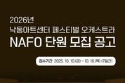 동네방네 김형규 기자 | 부산 강서구는 서부산 최초의 클래식 전문 공연장인 낙동아트센터와 함께할 ‘낙동아트센터 페스티벌 오케스트라(NAFO)’ 단원을 공개 모집한다고 밝혔다. 이번 모집을 통해 강서구는 수준 높은 음악적 역량과 열정을 지닌 연주자들로 오케스트라를 구성해, 향후 낙동아트센터에서 품격 있는 클래식 공연을 시민들에게 선보일 계획이다. NAFO는 내년 1월 낙동아트센터 정식 개관 기념 무대에서 말러 교향곡 제8번, 오페라 아이다, 발레 백조의 호수 등 세계적인 명작을 연주할 예정이다. 이에 앞서 오는 12월 24일, 말러 교향곡 제8번과 베토벤 교향곡 제9번 4악장을 연주하는 프리뷰 콘서트를 개최해, 정식 개관 전부터 웅장한 음악의 울림을 선사하며 낙동아트센터에 대한 시민들의 기대감을 높일 전망이다. 모집 분야는 ▲오케스트라 악장 ▲수석 ▲단원 ▲기획지원단원이며, 만 18세 이상이면 누구나 지원 가능하다. 접수 기간은 10월 10일부터 16일 오후 5시까지로, 강서구청 홈페이지에서 참여신청서를 내려받아 전자메일로 제출하면 된다. 전형은 기획지원단원의 경우 면접, 오케스트라 단원의 경우 실기