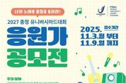 동네방네 김형규 기자 | 2027 충청 유니버시아드대회 조직위원회는 대회의 성공 개최와 국민적 관심 제고를 위해 공식 응원가 공모전을 개최한다고 25일 밝혔다. 이번 공모전은 ‘의미있게 색다른 2027 충청 유니버시아드대회’를 주제로, 혁신과 도전의 메시지를 담아낼 수 있는 응원가를 찾고자 마련됐다. 특히, 남녀노소 누구나 쉽게 따라 부르며 선수단과 관람객이 함께 호흡할 수 있는 곡을 발굴, 대회 기간 동안 전 세계인과 공유할 문화적 상징으로 삼을 계획이다. 접수는 오는 11월 3일부터 9일까지 이메일을 통해 진행되며, 대한민국 국민이면 개인 또는 팀 단위로 누구나 참여할 수 있다. 공모 분야는 ▲직접 창작 응원가 ▲AI 활용 응원가 등 2가지이며 보다 자세한 사항은 대회 공식 누리집에서 확인 가능하다. 총 상금은 1,200만 원 규모로, 수상자에게는 상금과 함께 조직위원장상과 대회 개막식 티켓 2매가 주어진다. 심사 결과는 11월 21일 발표되며, 시상식은 같은 달에 열릴 예정이다. 강창희 조직위원장은 “2027 충청 유니버시아드대회는 전 세계 대학생들이 땀과 열정을 공유하는 축제의 장”이라며