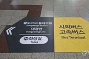 동네방네 김형규 기자 | 대구교통공사는 최근 도시철도 동대구역 대합실 내 바닥 안내표지를 전면 개선했다. 도시철도 동대구역은 도시철도 1호선과 더불어 철도, 대경선, 고속버스가 함께 연결되는 대구의 대표 환승 거점으로, 수많은 시민이 이용하는 만큼 타교통수단 이용 및 출구 방향 안내 개선 요구가 꾸준히 있었다. 공사는 이용객의 실제 이동 패턴과 주요 목적지를 면밀히 분석해 ▸이동방면별 색상 구분을 통한 시인성 개선 ▸ 주요 역사·환승역 방면 안내표지 반복 배치 ▸철도·대경선·고속버스 등 외부 환승시설 정보 강화 ▸현장 의견을 반영한 생활밀착형 정보(화장실, 병원, 시장 등) 제공 등 시민이 한눈에 이해할 수 있도록 수요자 중심으로 안내표지를 개선했다 특히, 안내표지 개선 과정에서 직원들이 직접 디자인하고 시공까지 수행해 예산 절감 효과도 거뒀다. 김기혁 대구교통공사 사장은 “이번 안내표지 개선은 시민 여러분의 실제 이용 경험과 요구를 중요하게 반영한 결과물”이라며, “지난 7월부터 전역사 주요 안내표지 36종 4,594개를 개선·보완했으며 앞으로도 시민 눈높이에 맞춘 안내표지를 지속적으로 정비해