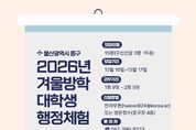 동네방네 김형규 기자 | 울산 중구가 12월 10일부터 12월 17일까지 ‘2026년 겨울방학 대학생 행정체험’ 참여자 15명을 모집한다. 모집 대상은 본인 또는 부모 가운데 한 명 이상이 중구에 주소를 두고 있는 상태에서 대학교에 재학 중이거나 복학 신청을 한 18세 이상 대학생이다. 참여를 희망하는 경우 중구청 일자리정책과를 직접 방문하거나 전자우편을 통해 신청서를 제출하면 된다. 중구는 국민기초생활보장수급자·차상위가구·한부모가정 학생 등을 전체 모집 인원의 20% 범위 내에서 우선 선발하고, 나머지 인원은 무작위 공개 추첨으로 선발할 예정이다. 선발 결과는 오는 12월 30일 중구청 누리집에 게시된다. 대학생 행정체험 참여자는 내년 1월 9일부터 2월 5일까지 평일 오전 9시부터 오후 6시까지 점심시간을 제외하고 하루 8시간 동안 구청과 동(洞) 행정복지센터, 지역아동센터 등에서 민원 안내, 자료 정리 업무 등을 하게 된다. 자세한 사항은 중구청 누리집에서 확인할 수 있다. 중구 관계자는 “이번 행정체험 프로그램이 행정의 역할을 이해하고 나아가 진로를 모색