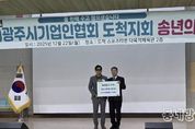 동네방네 김형규 기자 | (사)광주시기업인협회 도척지회는 지난 22일 도척스포츠타운에서 송년회를 개최하고 연말연시를 맞아 도척면에 이웃돕기 성금 300만 원을 기탁했다. 이번 송년회는 한 해를 마무리하며 회원 간 결속을 다지고 상호 격려하기 위해 마련된 자리로, 협회 회원들이 십시일반 정성을 모아 마련한 성금을 함께 전달하며 의미를 더했다. 김영기 회장은 “경기가 어려울수록 서로를 위한 나눔이 더욱 중요하다고 생각한다”며 “앞으로도 지역사회와 함께하는 다양한 사회공헌 활동을 지속하며 관내 어려운 이웃을 돌보는 데 최선을 다하겠다”고 말했다. 이에 대해 고형근 면장은 “어려운 시기에도 나눔을 실천해 주신 김영기 회장과 회원 여러분께 감사드린다”며 “기탁된 성금은 도움이 필요한 이웃들이 따뜻한 겨울을 보낼 수 있도록 소중히 사용하겠다”고 밝혔다. 한편, 광주시기업인협회 도척지회는 매년 300만 원의 성금을 기탁하며 꾸준한 나눔 활동을 이어오고 있으며 도척면의 각종 지역 행사 후원에도 적극 참여하는 등 지역사회 발전에 기여하고 있다.