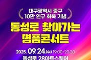 동네방네 김형규 기자 | 대구 중구는 인구 10만 명 회복을 기념하고 주민과 관광객들에게 새로운 활력을 전하기 위해 오는 24일 오후 7시, 동성로 28아트스퀘어에서 ‘동성로 찾아가는 명품콘서트’를 개최한다. 이번 콘서트는 (재)대구광역시 중구 도심재생문화재단이 주관하며, 다양한 장르의 공연팀이 무대에 올라 시민들에게 특별한 음악 축제를 선사할 예정이다. 출연진으로는 감성적인 무대를 선보일 어쿠스틱 밴드 ‘너들’, 에너지 넘치는 힙합팀 ‘데카&바스택’, 화려한 퍼포먼스를 준비한 댄스팀 ‘브리온’, 대중성과 음악성을 겸비한 ‘엘린 밴드’, 깊은 울림을 전할 팝페라 가수 배은희가 함께한다. 행사는 아나운서 양채원의 진행으로 풍성하게 꾸려질 예정이다. 류규하 중구청장은 “이번 콘서트는 인구 10만 회복이라는 중구의 새로운 도약을 시민과 함께 축하하는 자리”라며, “주민은 물론 동성로를 찾는 관광객 모두가 즐길 수 있는 문화의 장이 되길 바란다”고 말했다. 이번 공연은 누구나 현장에서 자유롭게 관람할 수 있으며, 공연 영상은 ‘대구중구문화재단TV’ 유튜브 채널을 통해 다시 시청할 수 있다.