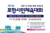 동네방네 김형규 기자 | 포항시는 오는 27일 포항종합운동장에서 ‘제15회 포항시민체육대회’를 개최한다. 격년제로 열리는 포항시민체육대회는 세대와 지역을 아우르는 대표적인 시민 화합 행사로 자리매김해왔다. 올해는 포항시-영일군 통합 30주년을 맞아 더욱 뜻깊은 무대가 마련된다. 이번 대회에는 29개 읍면동 선수단과 일반 시민 등 1만여 명이 참여한다. 특히 통합 30주년을 시민과 함께 기념하기 위해 관중석 중앙에 특설무대를 설치하고 성화 점화식을 진행, 시민 모두가 하나 되는 감동의 순간을 연출할 계획이다. 개회식 직후에는 국민가수 홍진영의 축하공연이 이어져 열정적인 무대로 현장을 뜨겁게 달굴 예정이다. 시민체육대회 하이라이트인 운동회 프로그램은 경쟁 위주의 종목을 줄이고, 줄다리기·윷놀이·줄넘기 등 남녀노소 누구나 즐길 수 있는 생활형 종목 중심으로 구성된다. 참여자 모두가 웃으며 어울리는 참여형 체육 축제로 진행된다. 또한 29개 읍면동 예선을 거쳐 선발된 10개 팀이 무대에 오르는 ‘시민화합한마당’ 공연도 준비돼 있어, 각 읍면동 대표들이 끼와 열정을 뽐내는 무대를 선보인다.
