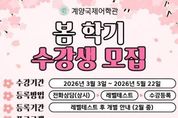 동네방네 김형규 기자 | 인천 계양국제어학관이 2026년 봄 학기 프로그램 수강생을 모집한다고 밝혔다. 수강 기간은 3월 3일부터 5월 22일까지이며, 전화 상담 후 레벨테스트를 거쳐 수강 등록이 진행된다. 등록 일정은 레벨테스트 이후 개별 안내될 예정이다. 정규 프로그램 레벨테스트는 오는 2월 10일 오후 3시에 계양국제어학관 누리집을 통해 온라인으로 진행되며, 선착순으로 접수 마감된다. 모집은 계양구민을 우선으로 한다. 정규 프로그램은 초·중등을 대상으로 운영되며, 월·수·금반은 4회, 화·목반은 23회 과정으로 진행된다. 교육과정은 단계별 영어 수업(Basic 1~MA)으로 운영되며, 최상위 과정인 알파고(Alphago)반이 포함된다. 원어민 및 내국인 강사의 교차 수업 방식으로 진행되며, 무상 통학버스를 운영한다. 토요 프로그램은 초·중등을 대상으로 운영되며, 1시간 수업은 11회 과정, 2시간 수업은 11회 과정이다. 프로그램은 스토리텔링, 리딩어드벤처스, 일본어, 컬러풀 잉글리시, 영어과학 과정으로 구성된다. 성인
