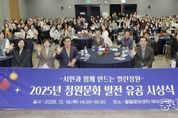 동네방네 김형규 기자 | 수원특례시는 18일 팔달문화센터 예당마루홀에서 ‘2025년 정원문화 발전 유공 시상식’을 열었다. 정원문화 발전에 기여한 시민과 단체 등에 수원시장상(47개)과 수원시의회 의장상(7개)을 수여했다. 시상은 표창장·감사패 수여, 시민정원 경연대회, 베스트 관리상, 올해의 정원인상 등 분야별로 진행됐다. 지난 10월 효원공원에서 열렸던 ‘2025년 수원시 시민정원 경연대회’ 수상팀들을 시상했다. 하나의 물방울이 만들어내는 무한한 생명의 파장을 표현한 ‘완뚝원정대’의 ‘리플(ripple) 가든’이 대상을 받았다. 어린 꽃이 꿈꾸는 산의 이미지를 담은 ‘진달래동산 꽃뫼’ 팀의 ‘어린 꽃이 꿈꾸는 뫼(산)’이 최우수상, 빛과 생명의 흐름을 표현한 ‘빛나게’ 팀의 ‘Flowing Light, Flowering Life(플로잉 라이트, 플라워링 라이프’가 우수상을 받았다. 이재준 수원시장은 “도심 속 열린 정원은 시민에게 휴식처가 되고, 기후 위기 대응에는 힘이 된다”며 “정원을 가꾼 수상자 노력에 감사하며 시민 일상에 초록이 늘도록 지원을 이어가겠다”고 말했다.