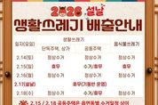 동네방네 김형규 기자 | 인천광역시는 다가오는 설 명절을 맞아 연휴 기간 중 생활쓰레기로 인한 시민 불편을 최소화하기 위해 생활쓰레기 특별수거 체계를 가동하는 등 종합 관리대책을 추진한다고 밝혔다. 시는 연휴 기간 생활쓰레기 적체를 방지하기 위해 군·구에서 반입하는 생활쓰레기의 광역폐기물처리시설 반입 일정을 별도로 지정해 운영할 계획이다. 송도자원환경센터와 청라자원환경센터는 2월 15일과 설 당일인 2월 17일을 제외한 연휴 기간 동안 반입을 허용하며, 수도권매립지는 2월 16일 하루에 한해 반입이 가능하다. 다만, 수도권매립지 반입은 공휴일 반입을 허용하는 것으로 직매립 금지 원칙은 현행대로 유지된다. 또한 군·구별로 민간 수거업체 운영 여건에 따라 생활쓰레기 수거 일정이 달라질 수 있어, 시민들은 연휴 기간을 고려해 정해진 수거일에 맞춰 쓰레기를 배출하고, 설 당일에는 배출을 자제할 필요가 있다. 아울러 인천시와 10개 군·구는 연휴 기간 중 생활쓰레기 처리와 관련한 불편 민원에 대비해 별도의 상황실을 운영하고, 군·구별 긴급 기동반을 편성‧운영할 예정이다. 이와 함께 광역폐기물처리시설 사전 점