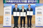 동네방네 김형규 기자 | 전북특별자치도가 국내 금융중심지 선두로 도약하는 서막이 열렸다. 도는 23일 도청에서 김관영 전북자치도지사, 김성주 국민연금공단 이사장, 양종희 KB금융그룹 회장이 참석한 가운데 ‘자산운용 특화 금융생태계 조성 및 지역경제 활성화’를 위한 3자 업무협약을 체결했다. 이날 협약은 지난 1월 KB금융그룹이 발표한 전북혁신도시 내 ‘KB금융타운’ 조성 계획의 실질적 후속 조치로, 민·관·공이 원팀을 이뤄 전북을 글로벌 자산운용 거점으로 키우고 지역 경제의 자생적 성장 동력을 확보하기 위해 마련됐다. ■금융거점 조성부터 기후테크 펀드까지…전방위 협력 전북자치도·국민연금공단·KB금융그룹은 전북혁신도시 내 ‘KB금융타운’ 조성을 위해 역할을 나눠 맡는다. 도는 행정적 지원을 전담하고, 국민연금공단은 민간 금융기관과의 자산운용 협력체계를 강화해 전북 특색의 금융 생태계 구축을 위한 마중물 역할을 담당한다. KB금융그룹은 KB증권·KB자산운용 등 핵심 계열사 기능을 집결시키며, 지난달 발표한 250명 규모에서 늘어난 약 380명이 전북혁신도시에 근무할 예정이다. 여기에 전북혁신도시 외 전주 지역 근무