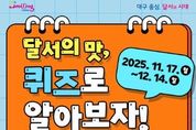 동네방네 김형규 기자 | 대구 달서구는 11월 17일부터 12월 14일까지 4주간‘달서의 맛, 퀴즈로 알아보자!’ 온라인 퀴즈 이벤트를 진행한다. 이번 이벤트는‘달서맛나’,‘달토기빵’등 달서구를 대표하는 음식 브랜드의 인지도를 높이고, 주민들이 즐겁게 참여할 수 있는 온라인 퀴즈 형식의 참여형 캠페인으로 마련됐다. 퀴즈는 달서맛나 홈페이지 내 이벤트 페이지에서 누구나 참여할 수 있으며, 4주 동안 매주 서로 다른 달서구 대표 음식 브랜드를 주제로 진행된다. 문항은 주민들이 쉽게 풀 수 있는 상식형 퀴즈로 구성되어 있어, 남녀노소 누구나 부담 없이 참여할 수 있다. 각 회차 종료 후에는 추첨을 통해 매주 70명씩 총 280명에게 편의점 모바일 상품권(5,000원권)을 증정하며, 당첨자 명단은 달서맛나 홈페이지를 통해 공개될 예정이다. 이태훈 달서구청장은 “이번 온라인 퀴즈 이벤트가 달서구 대표 음식 브랜드의 인지도 확산은 물론, 지역 맛집과 향토 음식에 대한 주민들의 관심을 높이는 계기가 되길 기대한다”며 “앞으로도 주민 참여를 확대하고 지역경제 활성화에 도움이 되는 다양한 홍보 이벤트를